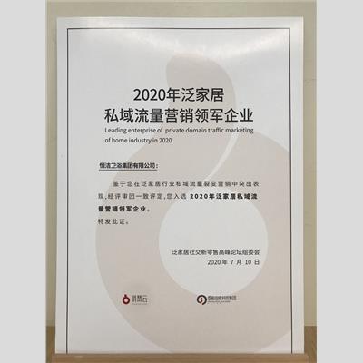獎 項:2020泛家居私域流量營銷領軍企業(yè)