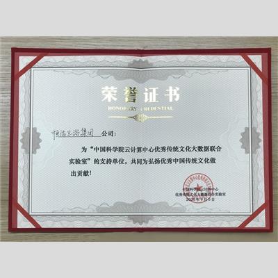 獎 項:“中國科學院云計算中心優(yōu)秀傳統(tǒng)文化大數(shù)據(jù)聯(lián)合實驗室”支持單位——恒潔