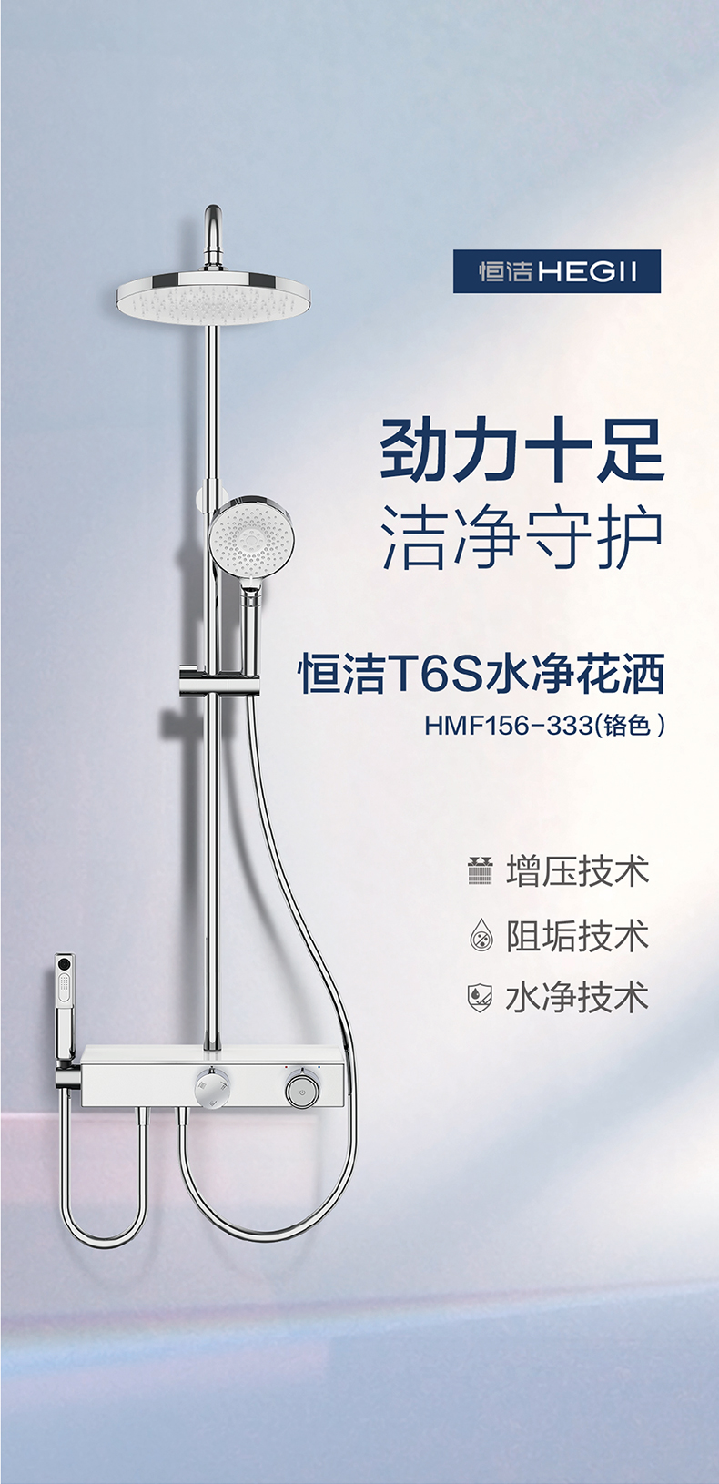 - 恒潔增壓技術(shù),0.45mm極致細(xì)孔設(shè)計,出水密集柔和