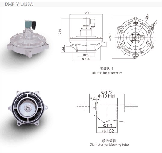 DMF-Y型電磁脈沖閥為淹沒式閥(亦稱嵌入式閥),它直接安裝在分氣箱上,具有更好的流通特性。壓力損失有所下降,適合于氣源壓力較低的工作場合。