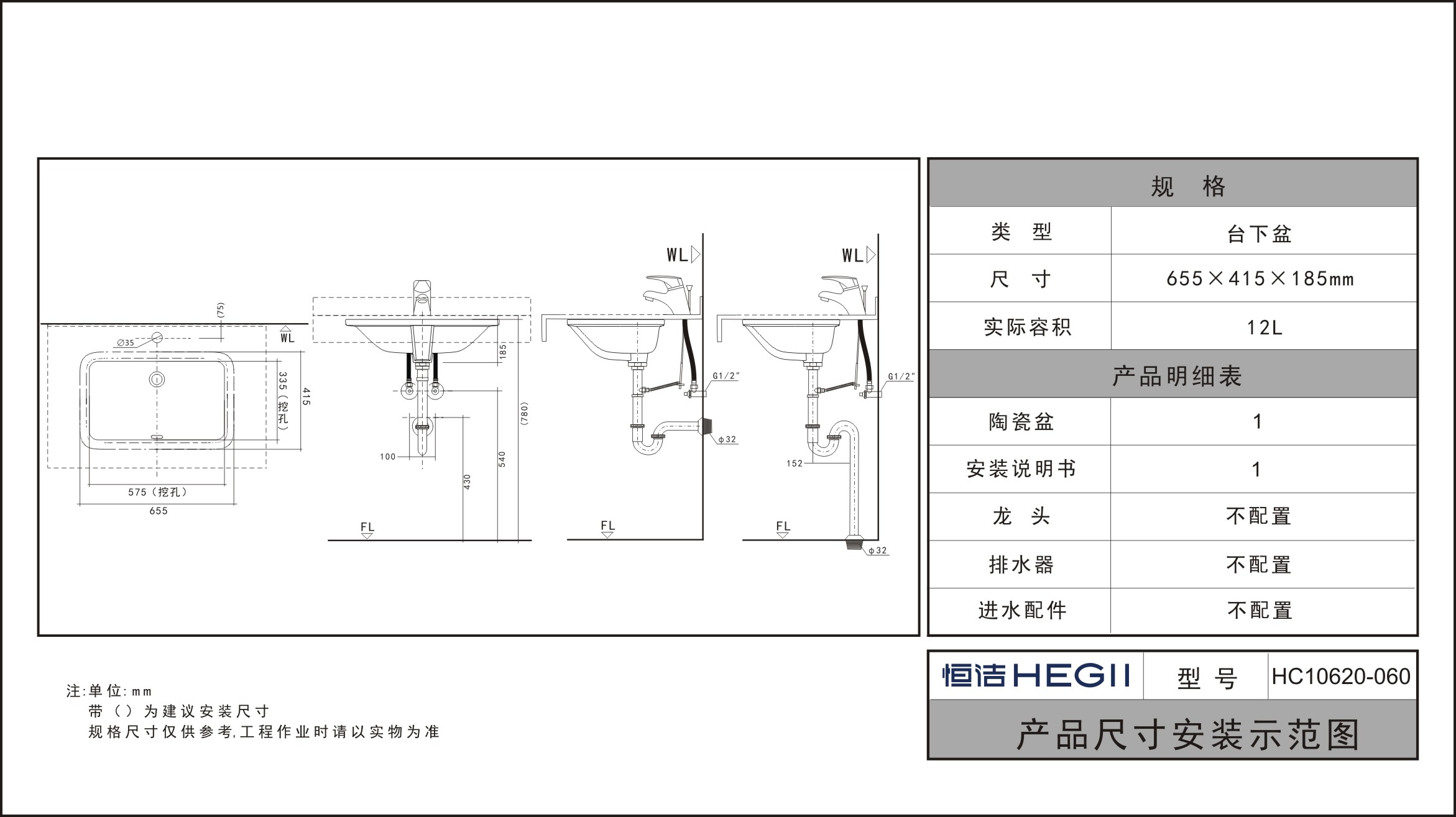 HC10620-060現代優雅系列臺下盆